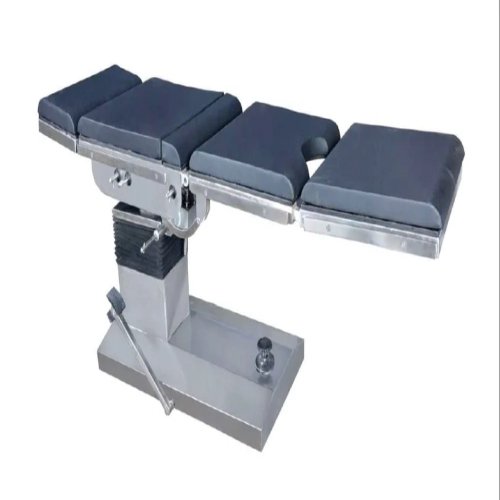 The table is equipped with a comfortable, removable mattress and essential accessories like armrests, leg supports, and anesthesia screen for enhanced functionality. Its robust structure provides stability and safety during surgeries, while the hydraulic mechanism ensures reliable and effortless operation without dependence on electricity.